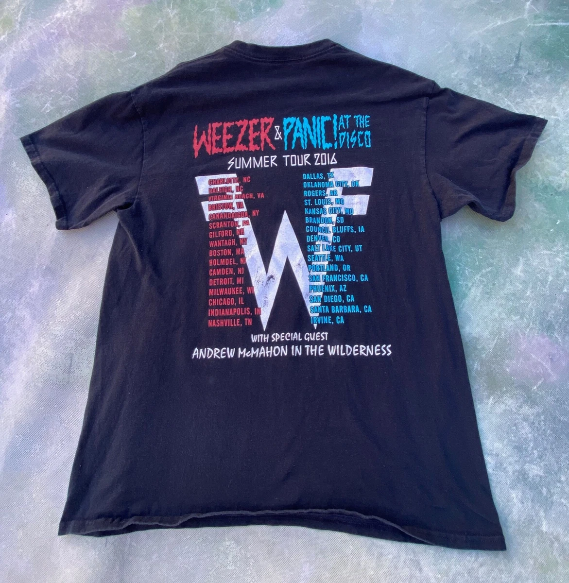 Source : www.nj.comWeezer & Panic! At The Disco Summer Tour 2016 Men’s T Shirt__ SEE